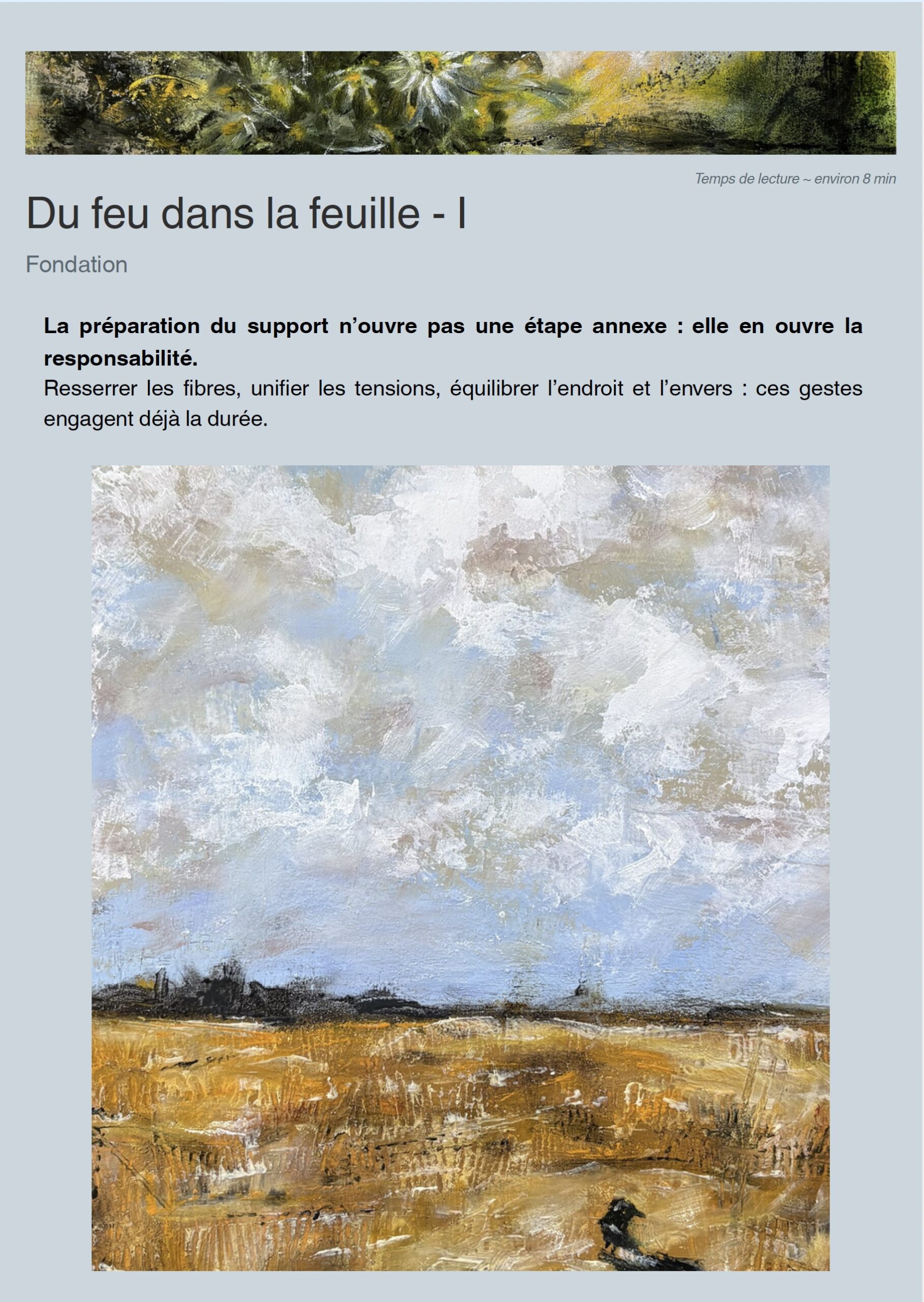Dans cette première chronique, je raconte comment une peinture commence avant même la couleur : dans le travail invisible du support.