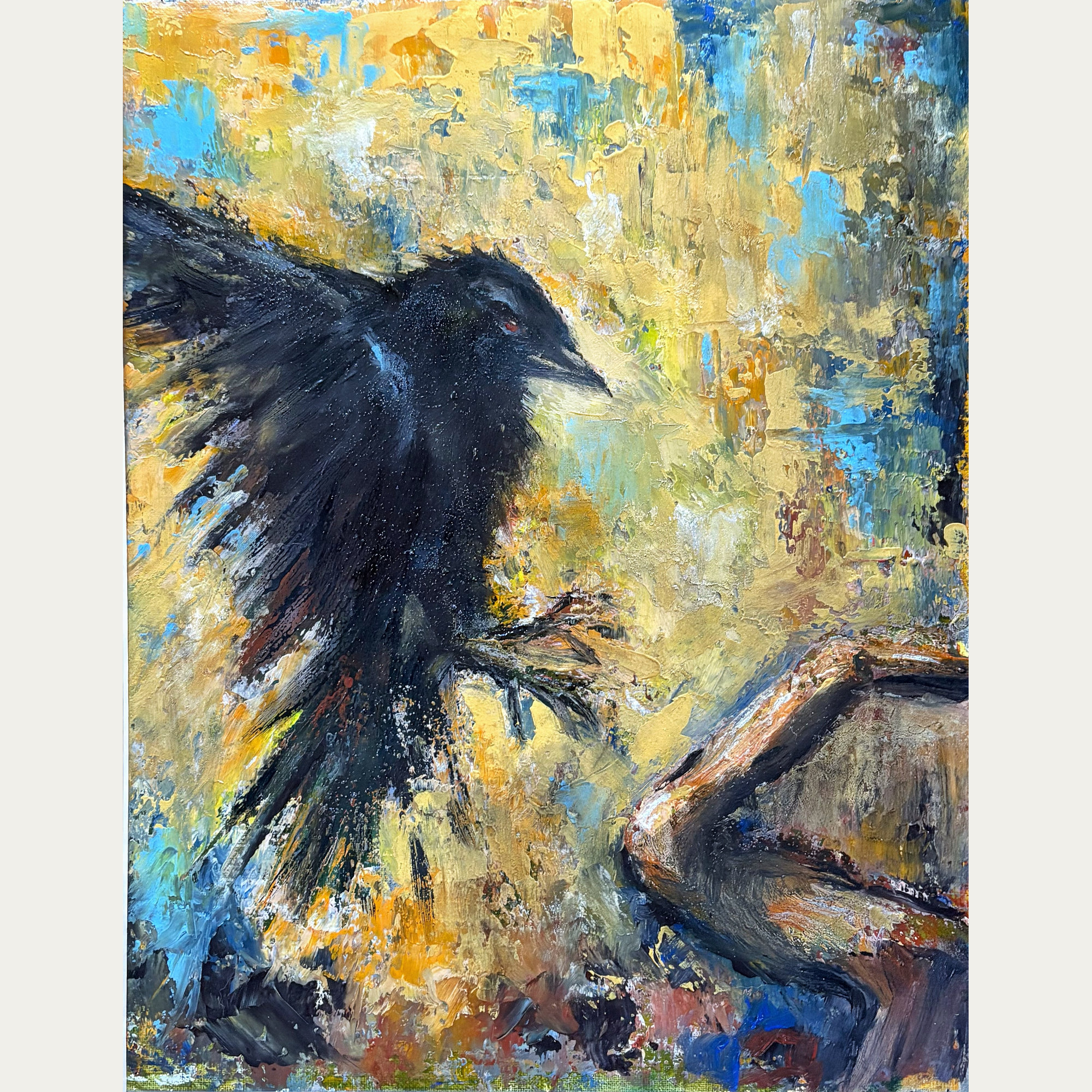 Choucas se perchant Choucas se perchantHuile sur papier32 x 24 cm2025Série Corvidés & autres volatiles ← →
