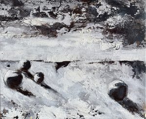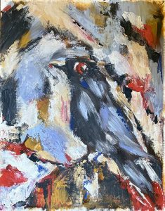 Choucas, huile sur papier, 20 x 30 cm, 2025, collection particulière