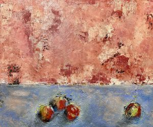 Clémentines maritimes, huile sur papier, 65 x 50 cm, 2025
