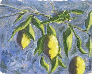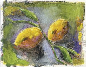 Coup de vent, citrons d'hiver, huile sur toile, 40 x 30 cm, 2025