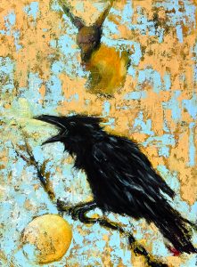 Corbeau se perchant, huile sur papier, 40 x 30 cm, 2025